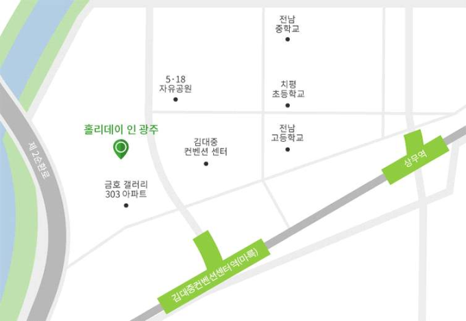 홀리데이인 광주 (광주광역시 서구 상무누리로 55) ![]() ![]() ![]() ![]() 한국전기연구원 스마트그리드본부(광주광역시 남구 도시첨단산업로 27) ![]() |